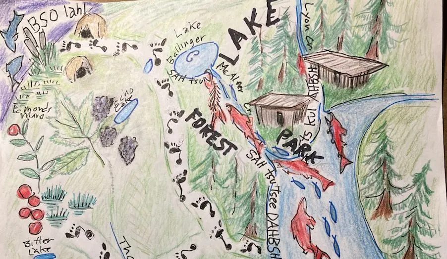 The Indigenous History Day celebration will mark the formal accession of Buerge’s new manuscript, an Indigenous history of Lake Forest Park, into the collection of the Shoreline Historical Museum, a supportive Lake Forest Park neighbor. Buerge will be honored for lifetime achievement by the little group of Lake Forest Park residents who about a year ago raised money to commission his manuscript. Especially on Lyon Creek’s all-but-lost, anadromous salmon run to habitat in Snohomish County.