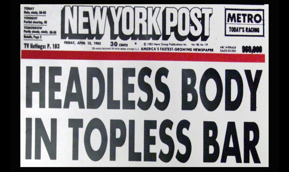 The Post broke political stories as well as assorted scandals: Woody Allen’s affair with Mia Farow’s adopted daughter, Soon-Yi Previn; Donald and Ivana’s marriage split; and Sydney Biddle Barrows’ operating as “the Mayflower Madam.” Splashy headlines always topped the story of the day. Among them: “Headless Body in Topless Bar;” “The Hunk Flunks” when JFK Jr. failed the New York Bar exam; “Here We Ho Again!” after Gov. Eliot Spitzer was exposed patronizing a prostitution ring; and “Best Sex I Ever Had” opposite Trump’s grinning photo and rumors about an affair with Marla Maples.