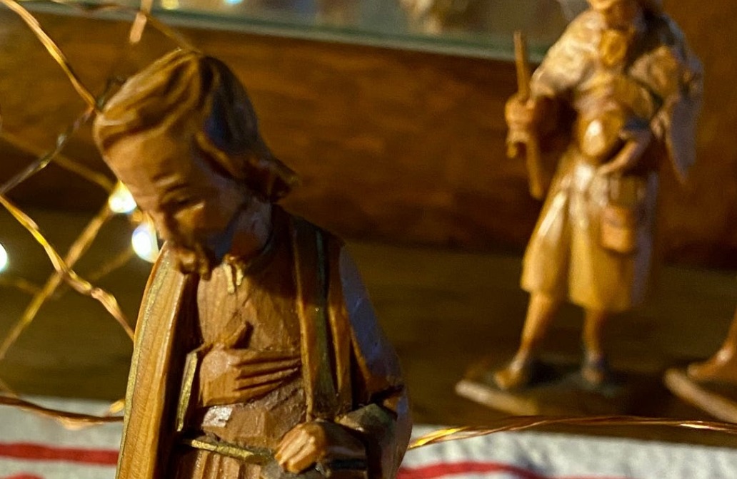 Let’s pay attention to Joseph (the photo above is of the guy from our family creche). It begins in verse 18 with the words, โNow the birth of Jesus the Messiah took place in this way.โ Talk about laconic; talk about understated! It’s so easy to glide over this and the six verses that follow without really noticing how epochal the moment is.