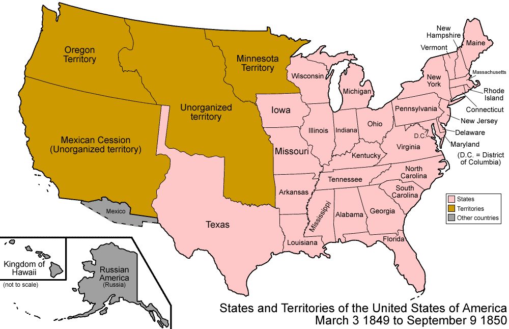 In our Northwest, Polk gained the โOregon Country, which included Washington, Oregon, and part of Idaho. He was unable to get the border set at 54โ40โ โ remember โ54โ50 or fightโ โ and had to settle for the 49th parallel as our countryโs northern border. Keep in mind that the U.S. currently claims five major inhabited territories: Puerto Rico, U.S.